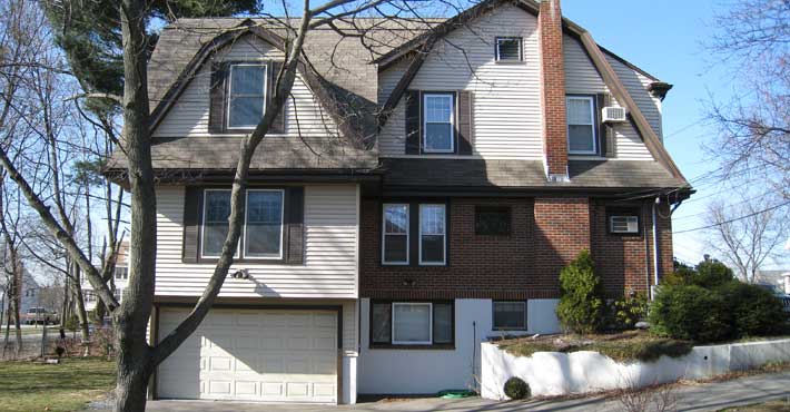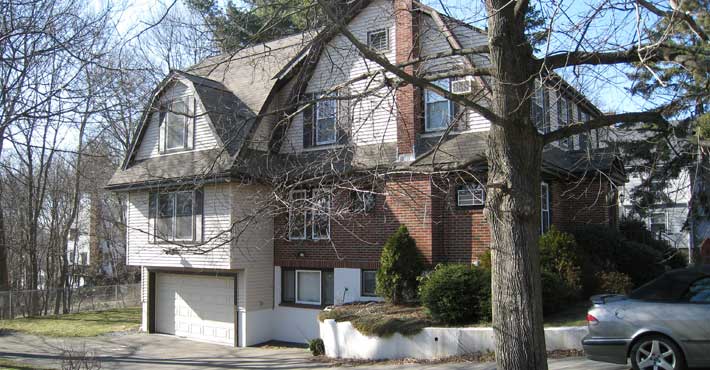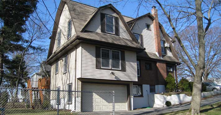 This side view show the extent of the add on, including the oversized one-car garage at bottom.